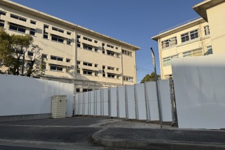 旧交野第一中学校、校舎解体が始まってる。道路沿いなんか白い。