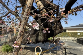 えっ・・・桜、もう咲き始めてる。青年の家のところ。