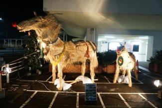 JR寝屋川公園駅前に2026年の干支「午」が登場してる!クリスマスツリーも