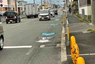 青い自転車優先通路が出来てる!府道736号線のところ