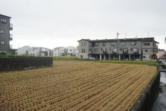 私市の田んぼに「ひこばえ」が生えてる。田植え直後みたいな光景!