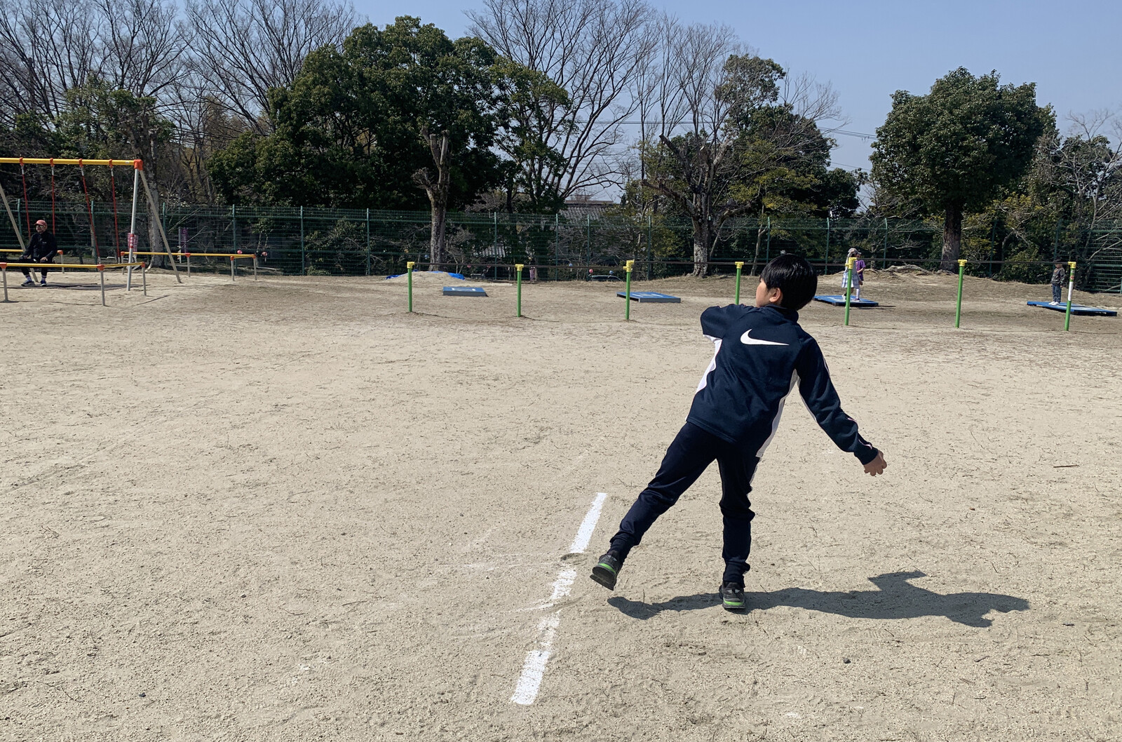 読んで字のごとく、どこまで遠くまで球を投げられるかを、測定します。