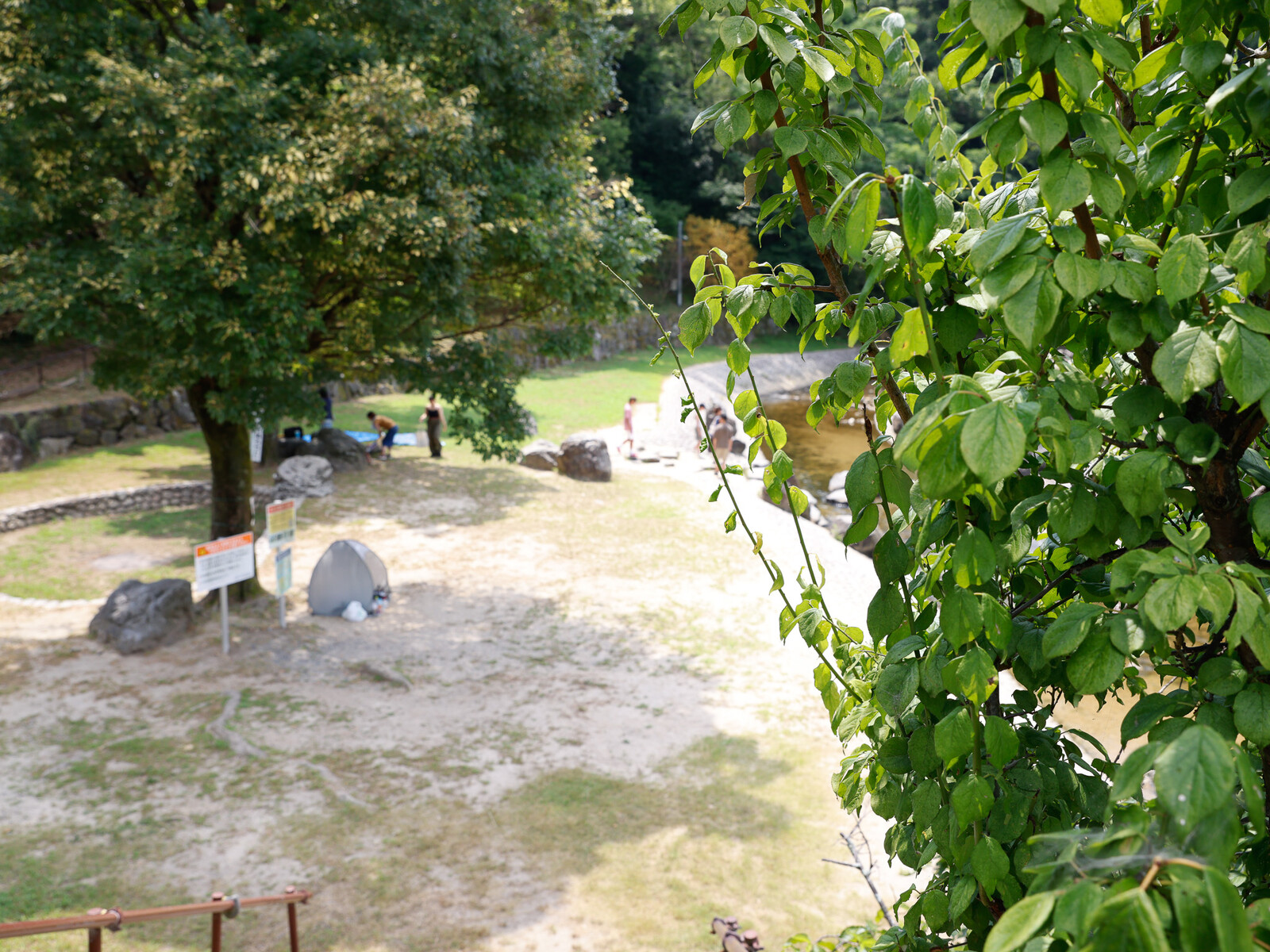 先客のキャンプに来られていた団体さんもいらっしゃいましたが、まずは涼しげな流れがある方へ。