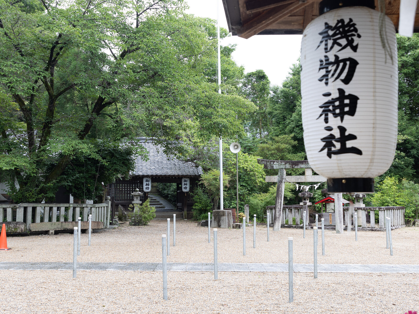 七夕祭りのノボリが旗めき機物神社が七夕モードになってる
