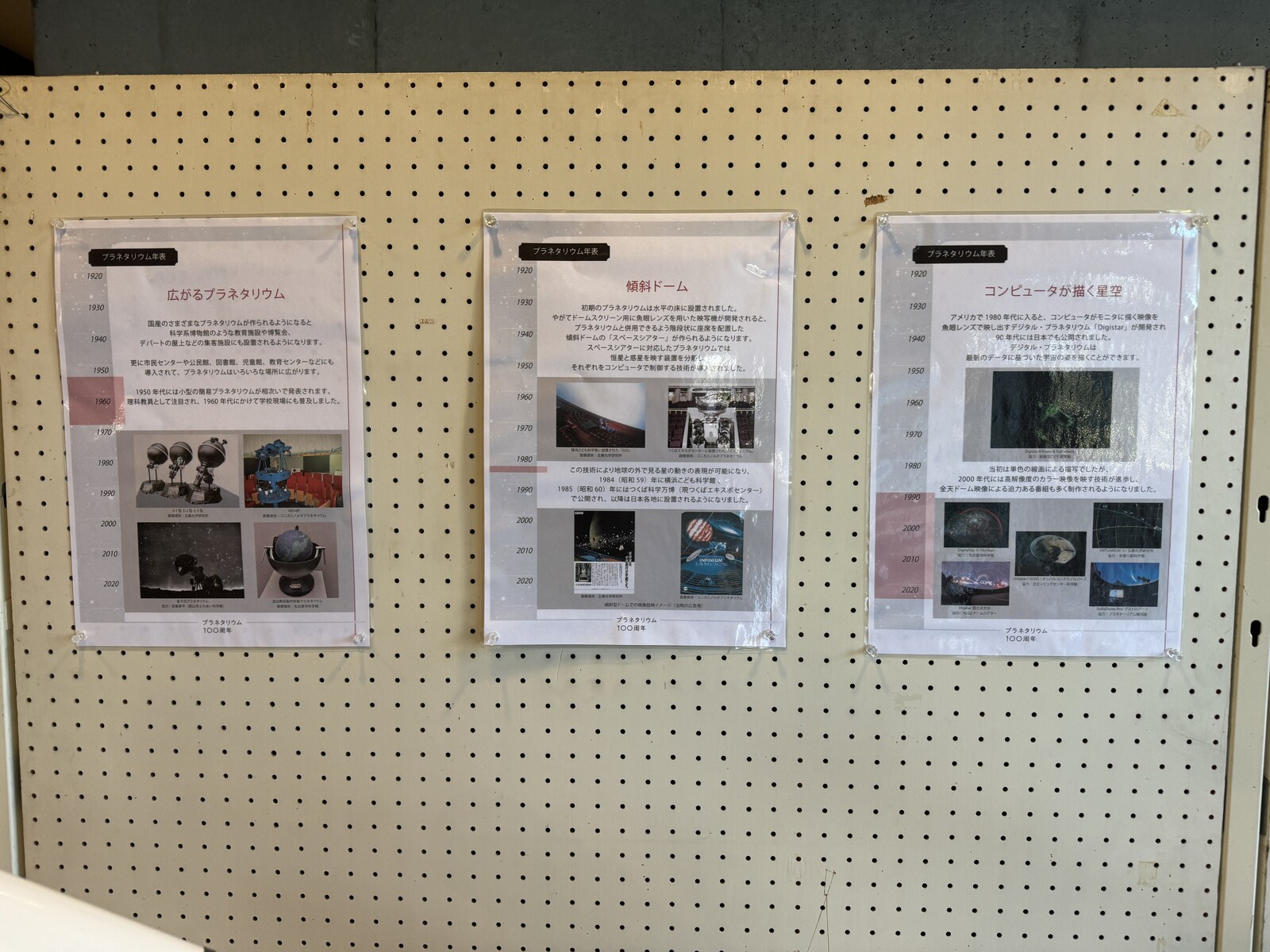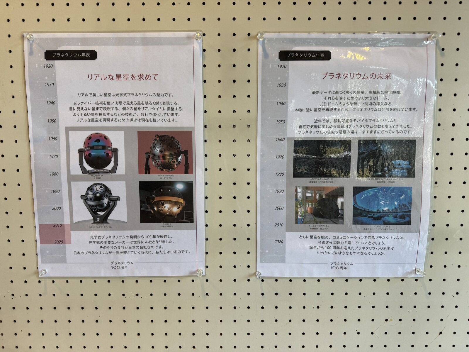 壁面パネルには2023年がプラネタリウムが誕生して100周年だったこともありプラネタリウムの変遷などの紹介もされていました。