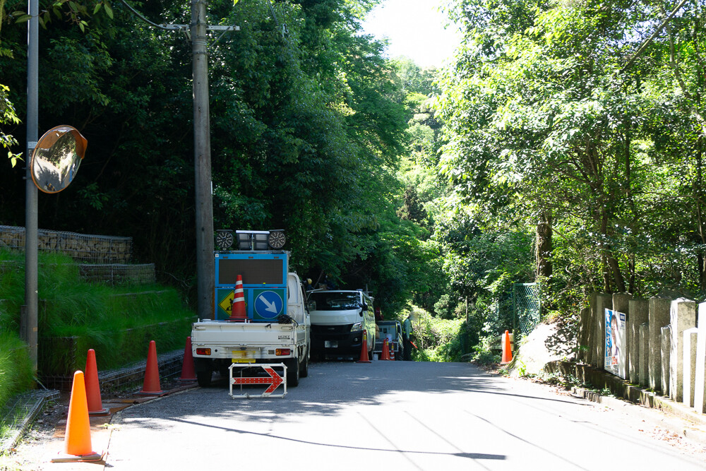 撮影時には片側交互通行の交通規制が敷かれていました。