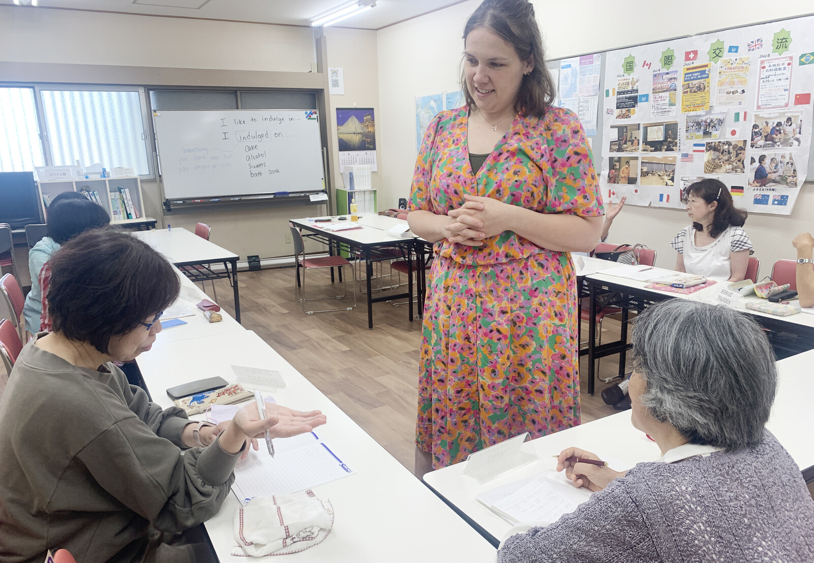 水曜日に開講されているカイリー(Kylee)先生の英会話(中級)の様子を取材させてもらいました。