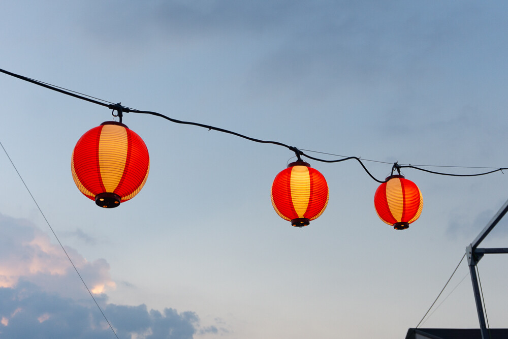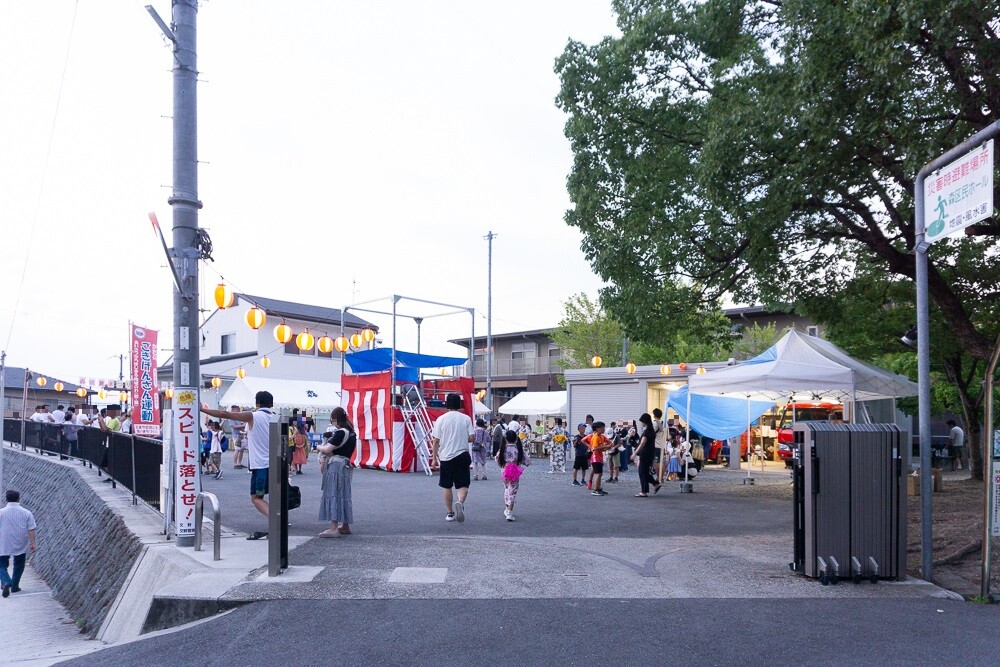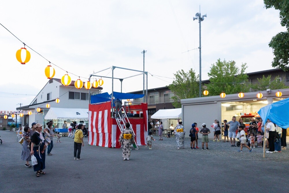 櫓が組まれた会場から盆踊りの音楽が聞こえてきます。