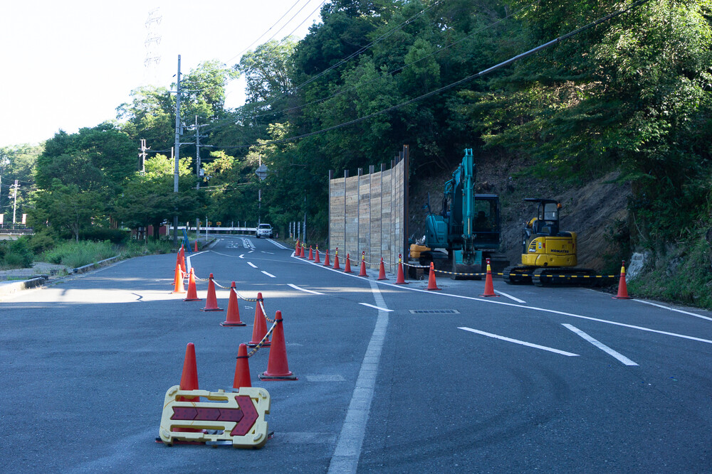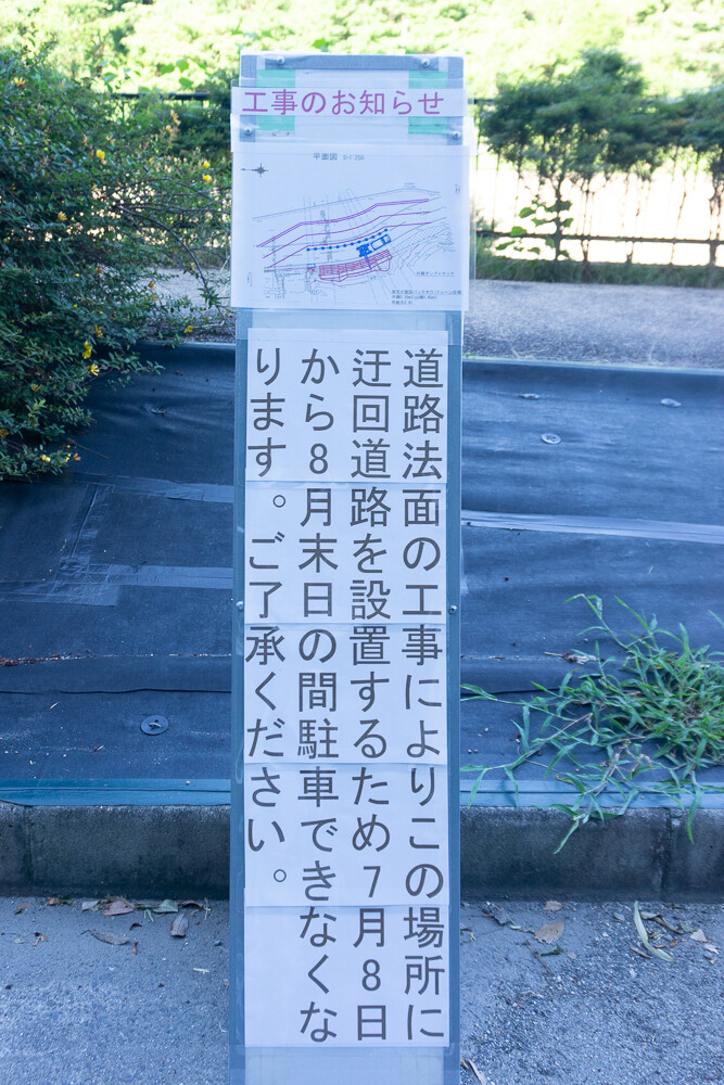 お知らせによると、法面の工事のため迂回道路の設置され、その期間は7月8日から8月末日までとのこと。