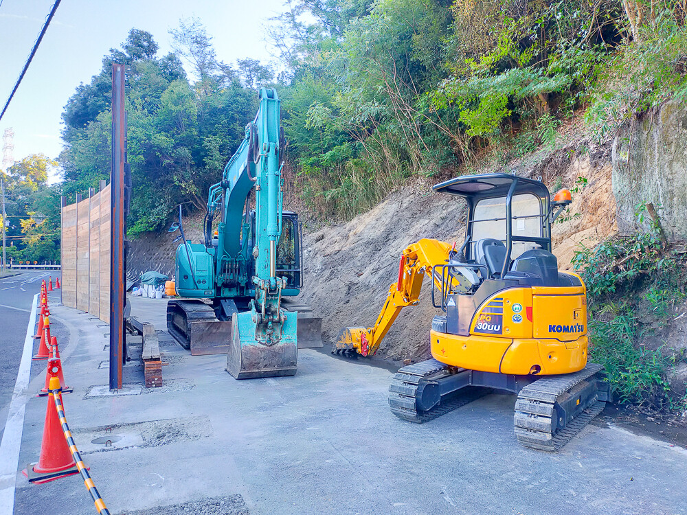 重機が法面を削っているのでしょうか。