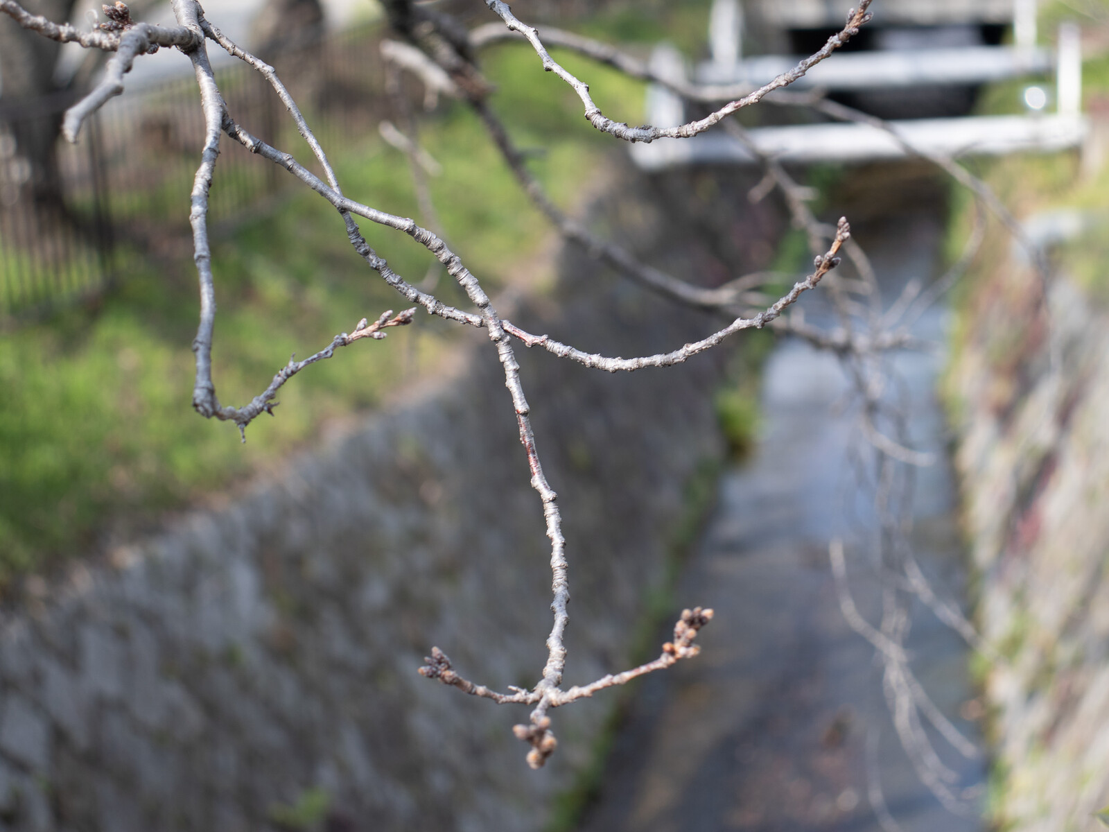 藤が尾のカインズの裏手近くに枝垂れ桜もあるのですが、そちらもまだまだ蕾が固かったです。