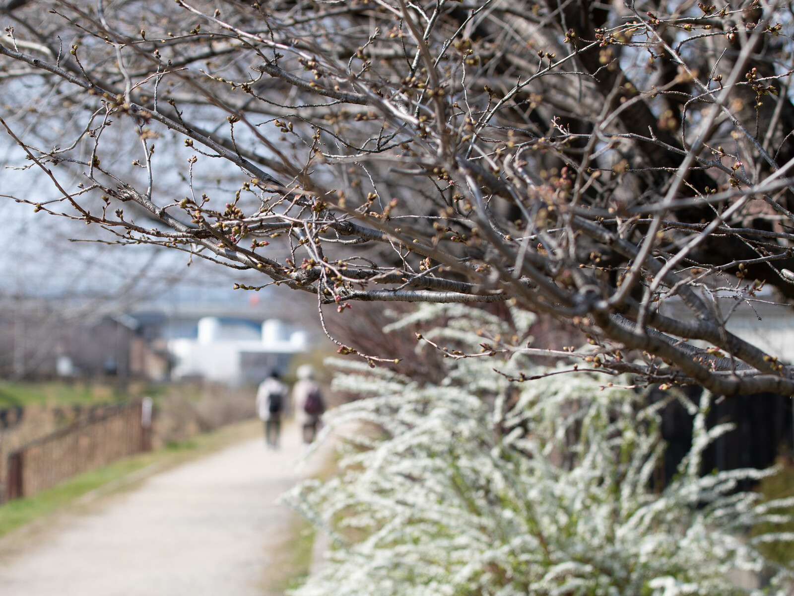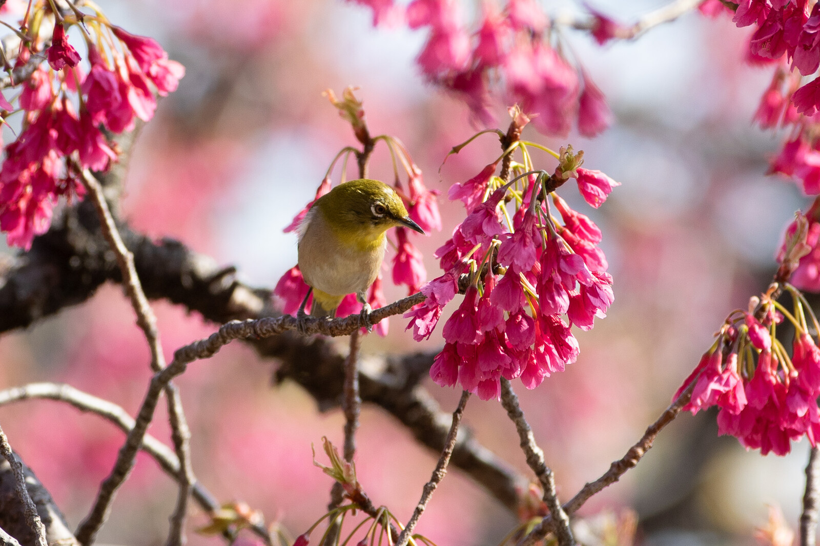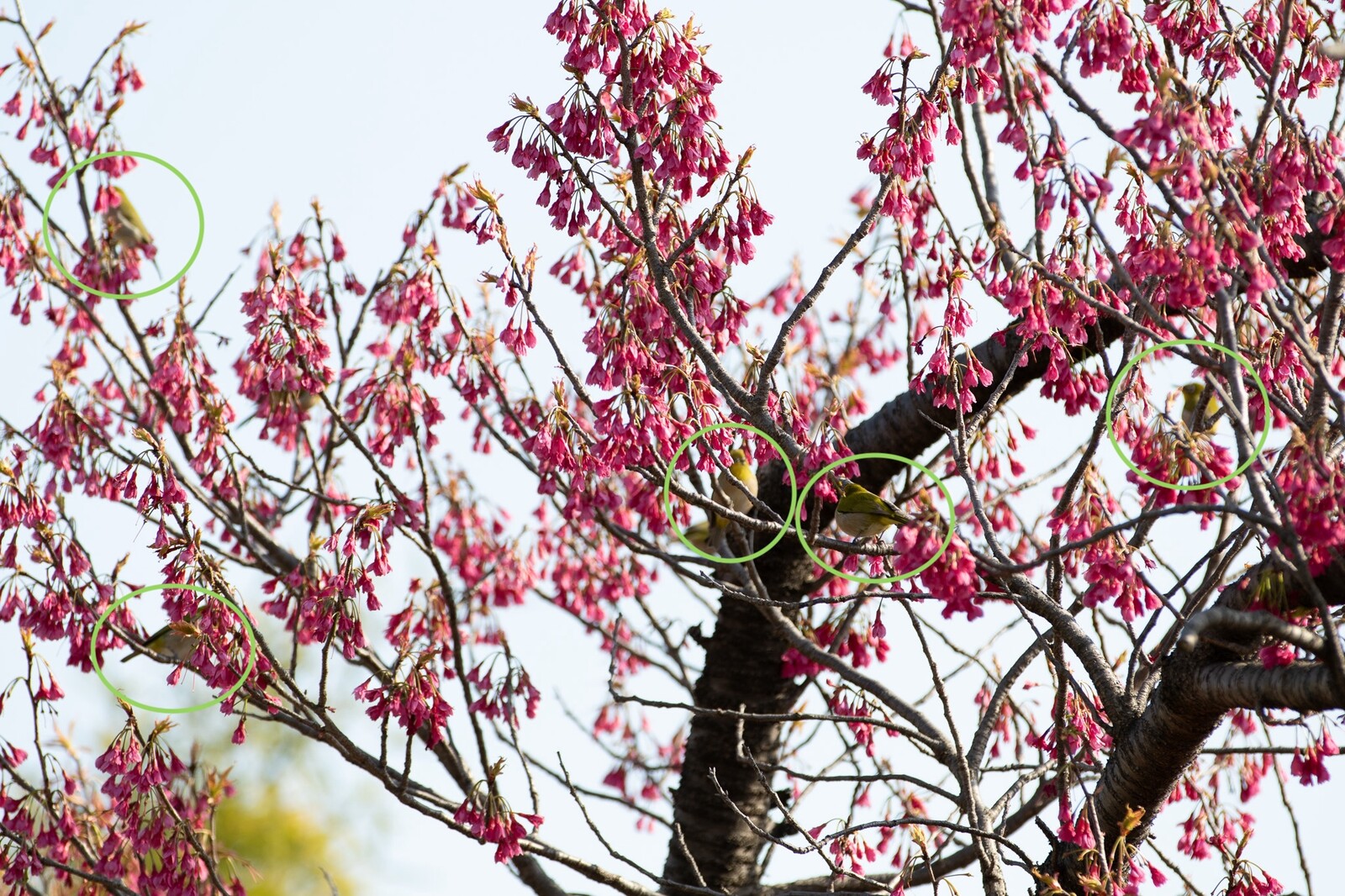 天の川河川敷の桜情報。ほんのりピンクが見えてきた!メジロもけっこう来てる