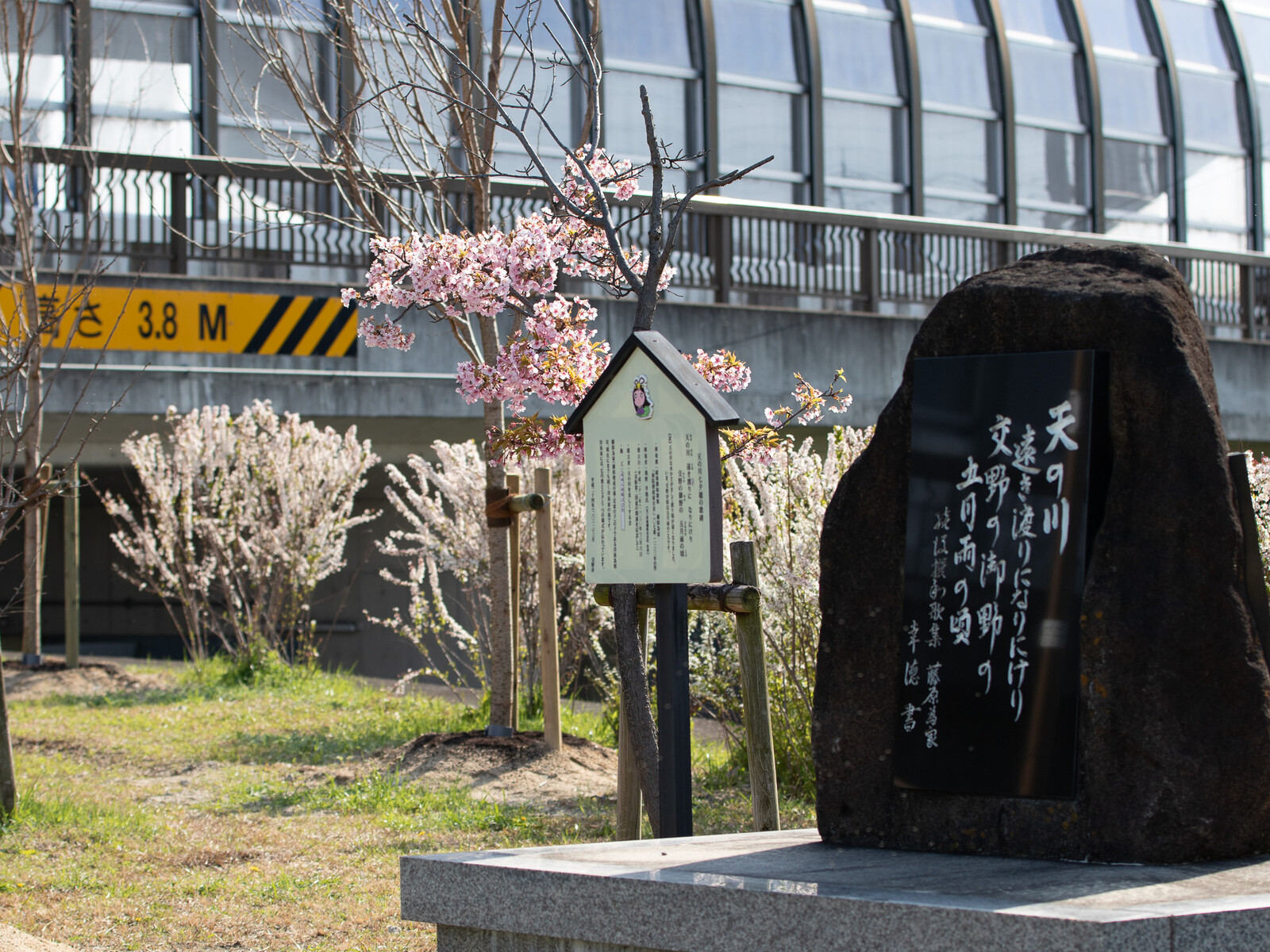 第二京阪道路沿いの天の川七夕橋の近くに早咲きの桜を見つけました。