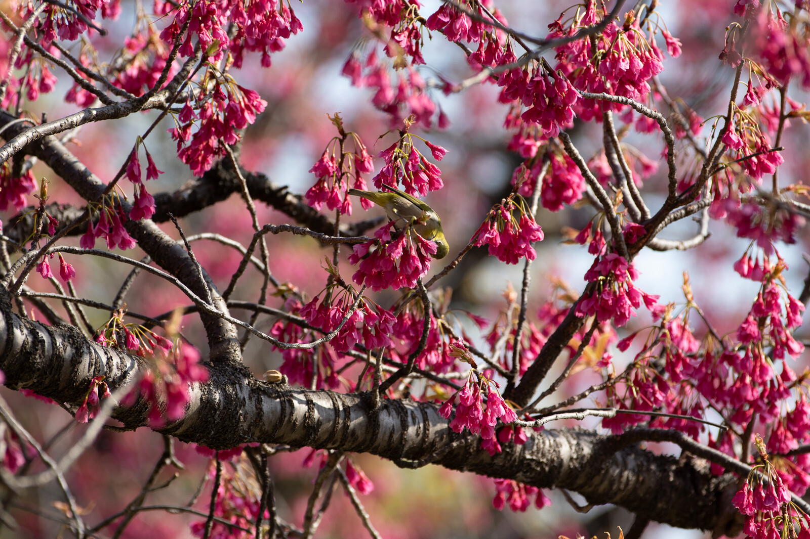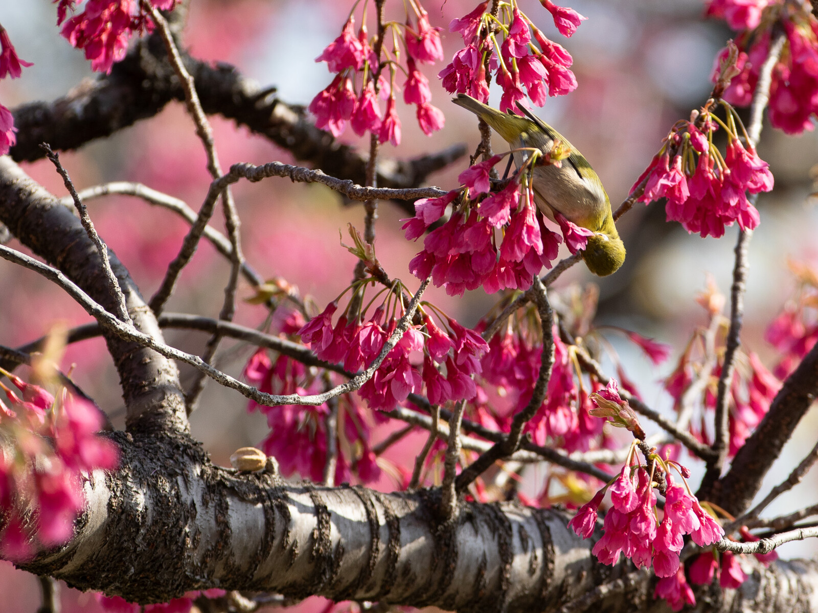 必死になって細いカンヒザクラの中に顔を突っ込んでいました。