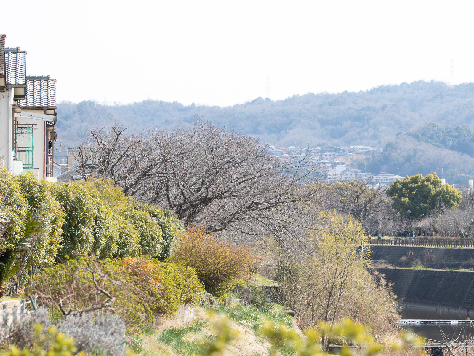 こちらは、交野橋を渡ったところにある枝垂れ桜。