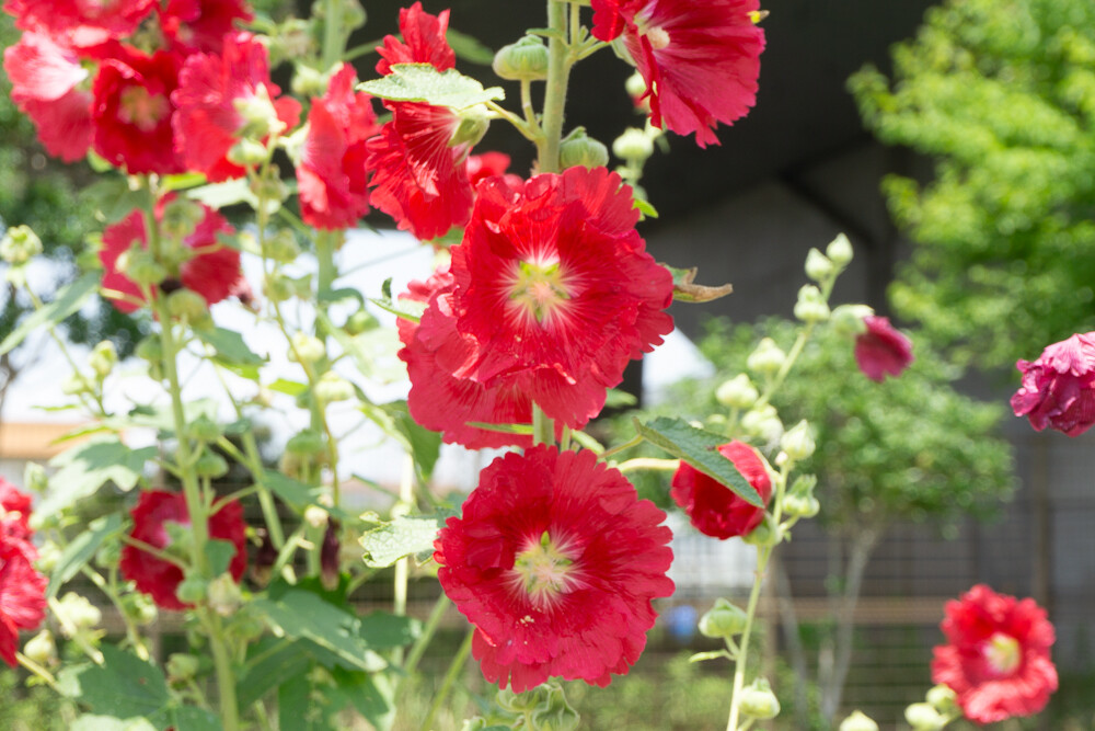 タチアオイはアオイ科の多年草で、梅雨の時期に見ごろを迎えるそうです。