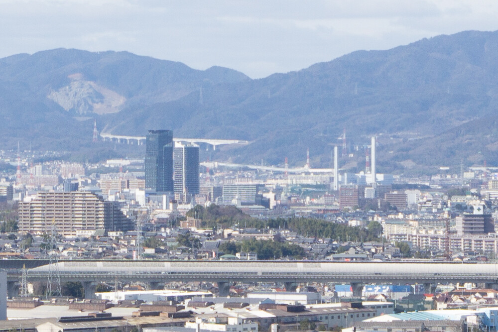 個人的に手前の第二京阪道路と奥の新名神高速道路が近く見えるのが意外でした。